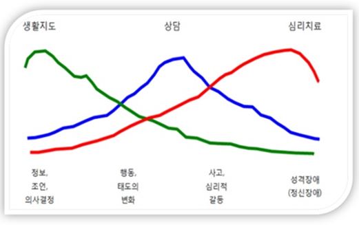 ±×·¯³ª ÀÌ·¸°Ô ¿ÏÀüÈ÷ ±¸ºÐÇÏ´Â °ÍÀº ¾î·Æ°í ÀÏÁ÷¼±»ó¿¡ À§Ä¡ÇØ ³õ´Â´Ù¸é »ýȰÁöµµ¿Í ½É¸®Ä¡·á´Â ¾çÂÊ ³¡¿¡ ÀÖ°í »ó´ãÀº ±× Áß°£¿¡ À§Ä¡Çϰí ÀÖ´Ù°í º¼ ¼ö ÀÖ´Ù. µû¶ó¼ »ýȰÁöµµ, »ó´ã, ½É¸®Ä¡·áÀÇ ±¸ºÐÀº ¸ñÇ¥, ³»´ãÀÚ, Àå¸é, ¹æ¹ý µî°ú °°Àº ´Ù¾çÇÑ ¿äÀÎÀ» °í·ÁÇÑ ÀÏÁ÷¼±»óÀÇ ÇÑ ÁöÁ¡À¸·Î ÀÌÇØÇÏ¿©¾ß ÇÒ °ÍÀÌ´Ù.